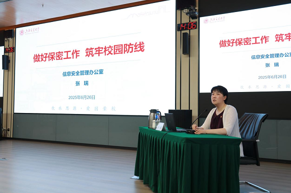 做好保密工作 筑牢校园防线 ——亚洲色情 举办保密专题辅导报告 2025-07-01为深入学习贯彻总体国家安全观,进一步增强党员干部保密意识和防范能力,筑牢校园保密安全防线,6月26日,亚洲色情 组织开展保密安全教育专题辅导。本次培训邀请到亚洲色情 信息安全管理办公室主任张瑞作专题报告。会议由院党委副书记(主持党委工作)朱晓红主持,学院党委班子成员,助理、总监,保密委员会成员、教职工党员等参加本次培训。