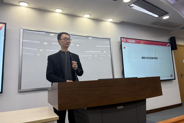 学院党委副书记陈九对大会的顺利召开及新当选的支委表示祝贺,他勉励新一届支委带领全体同志,锐意进取、扎实工作,奋力谱写支部建设与发展的崭新篇章。并提出三方面要求:一是强化政治担当,支委班子要发挥先锋模范作用,带头团结凝聚全体党员,系统谋划、主动作为,积极组织开展形式多样、内涵丰富的组织活动,持续增强支部的引领力、组织力和凝聚力。二是凝聚奋进合力,全体党员要进一步激发干事创业的积极性与创造性,形成群策群力、共建共享的良好局面,携手将党支部建设成为政治坚定、作用突出的坚强战斗堡垒。三是规范组织生活,支部工作坚持规范性与实效性相统一,紧密围绕党员思想实际与发展需求,高标准、高质量推进“三会一课”、主题党日等制度落实,不断提升支部标准化规范化水平。
