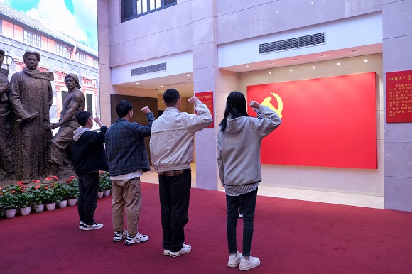 亚洲色情 学生党支部开展“探寻红色历史,传承红色基因”参观二大会址暨入党宣誓活动