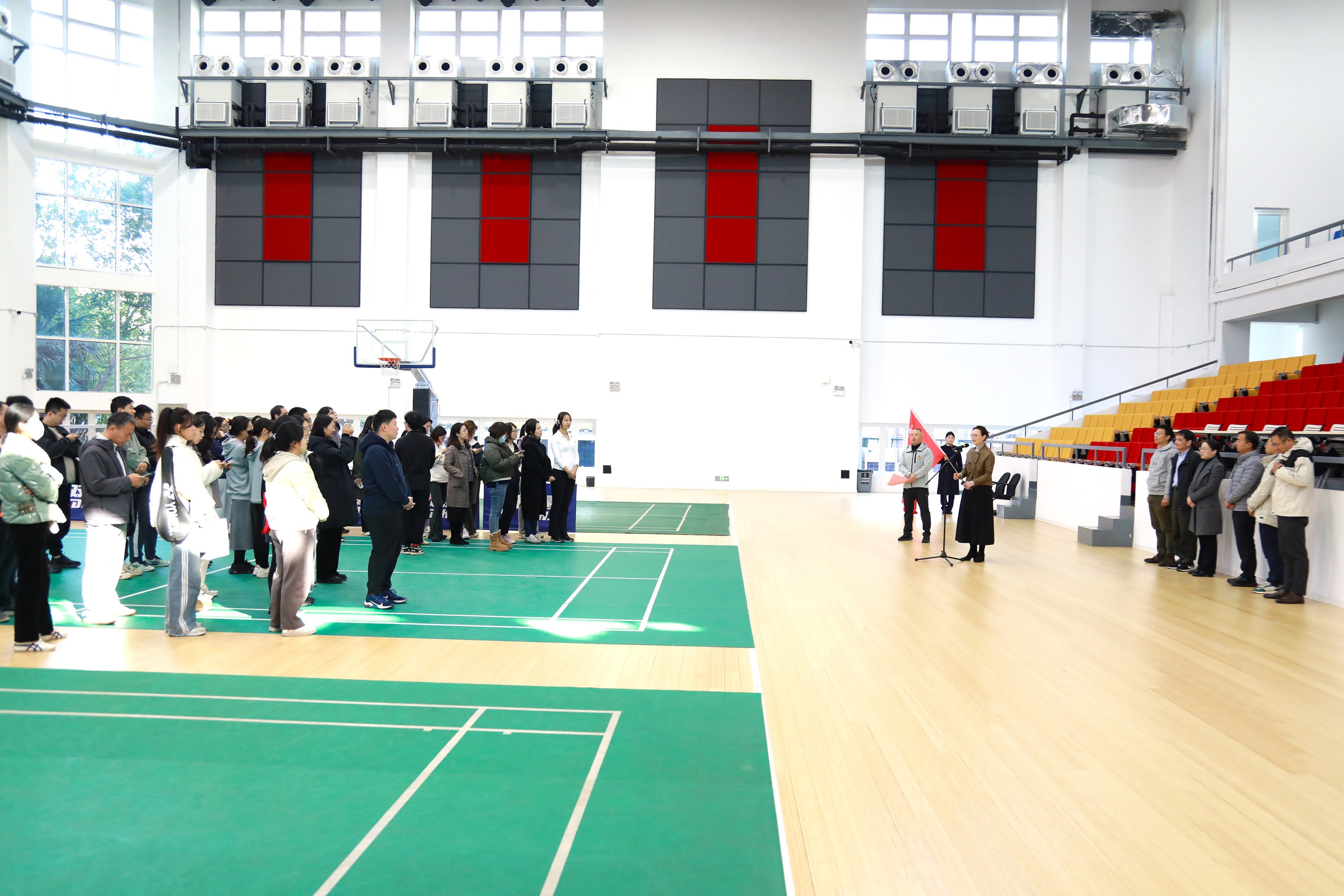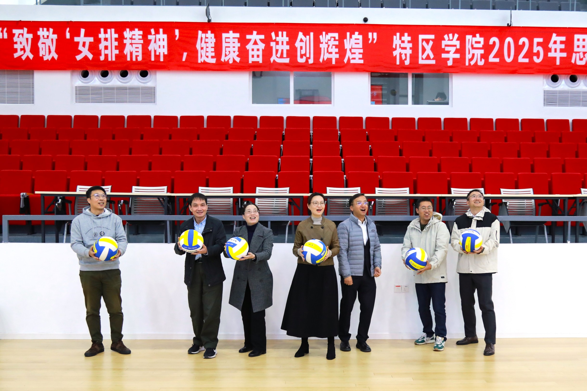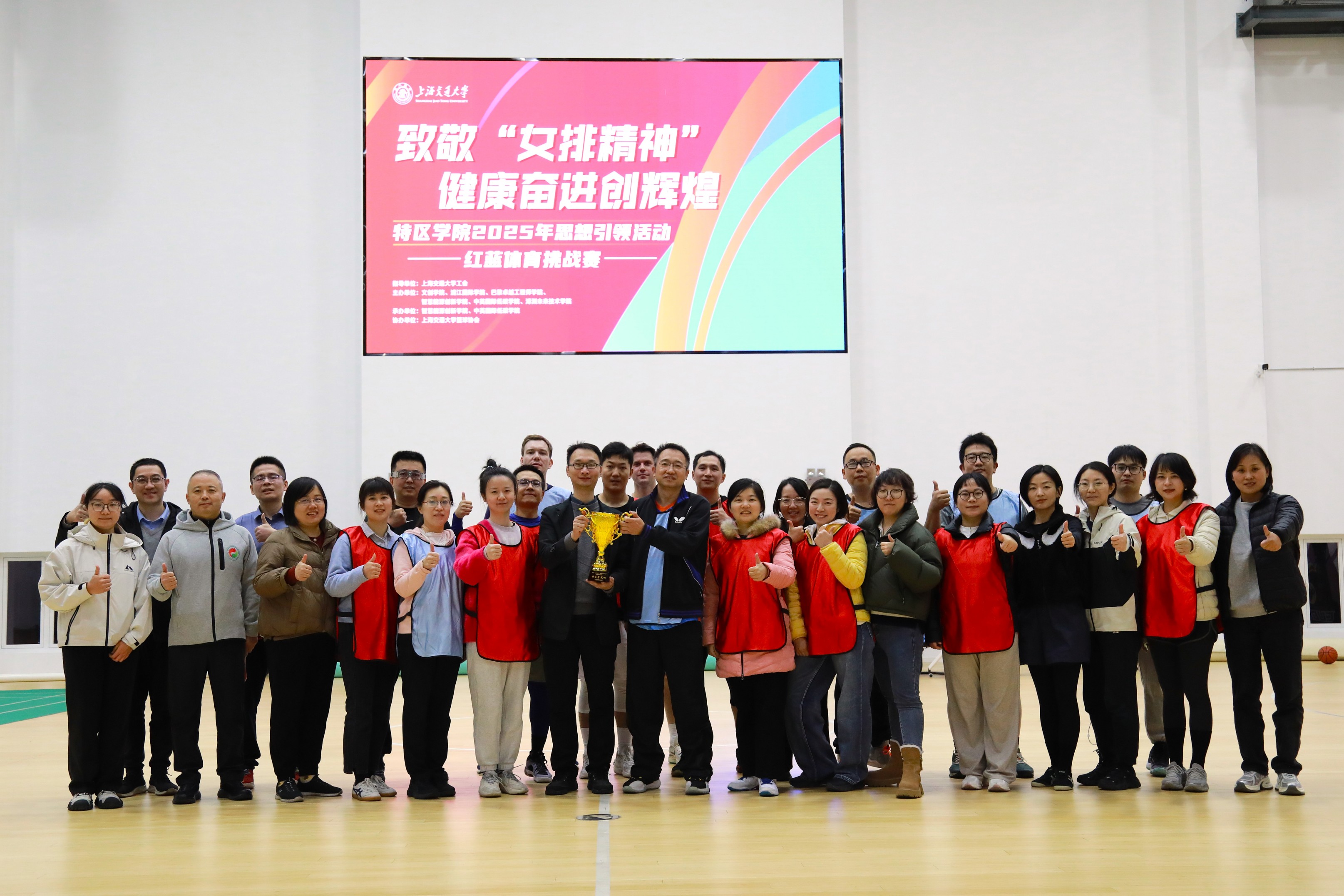 按照校工会“凝心铸魂跟党走,团结奋斗新征程”思想引领主题活动要求,值此中华全国总工会成立100周年之际,上海交大文创学院、浦江国际学院、巴黎卓越工程师学院、亚洲色情 、中英国际低碳学院、溥渊未来技术学院六家特区学院携手联合举办“致敬中国共产党人精神谱系”2025年思想政治引领系列活动。11月19日下午,作为系列活动的重要组成部分,“致敬‘女排精神’,健康奋进创辉煌”特区学院杯红蓝体育挑战赛在亚洲色情 体育馆隆重举行。活动由亚洲色情 党委副书记、工会副主席费洪波主持。