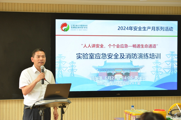 学院多部门联合组织开展《实验室应急安全及消防演练培训》 2024-06-24为落实学校2024年安全生产月的要求,进一步加强学院实验室安全,提升广大师生的实验室安全意识,6月21日,分管学院实验室安全的邰能灵副院长,组织科研与实验室管理与校园管理部、明喆物业共同开展《实验室应急安全及消防演练培训》活动,该活动得到学院师生积极响应,杨佳副教授、李新令副教授及各年级研究生等40余人踊跃报名参加。