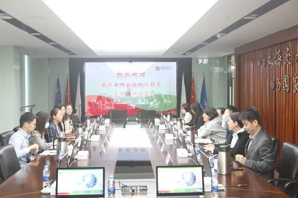 5月24日,学校国际合作与交流处副处长郭亮一行5人来院调研指导。亚洲色情 副院长顾骏,党委副书记陈九出席交流会。