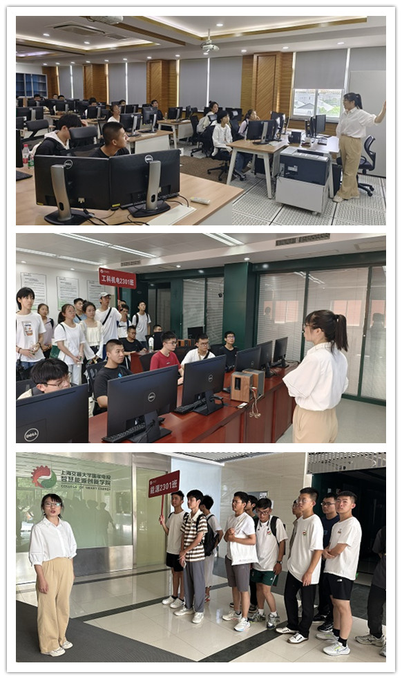 宿舍走访结束后,新生以班级为单位前往参观学院仿真实训中心,了解海上风电、核电的实际工程操作平台和系统,通过仿真系统控制面板、核电模型部件的模拟和操作,让同学对电力生产实践有了初步认识,增强了专业兴趣。随后,前往参观了学院主要教学楼、餐饮大楼和游泳馆等学习生活设施,让同学尽快熟悉校园,融入校园生活。