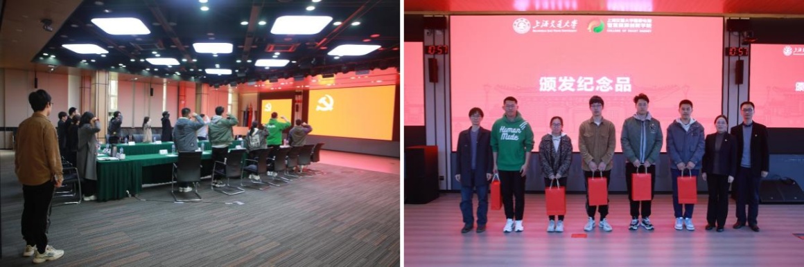 会议最后,陈九带领大家重温入党誓词;学院领导向毕业生党员及入党积极分子代表发放了纪念品。