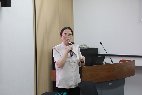 朱晓红作总结发言。她对赵老师的精彩分享再次表示感谢,并提出,教书育人是高校教师的重要职责和神圣使命,希望学院教师对于教学工作能够有更深入的思考和感悟,学院鼓励全体教师积极参加各类教学竞赛,将持续提供有力支持,推动教师成长和学院教学质量提升。