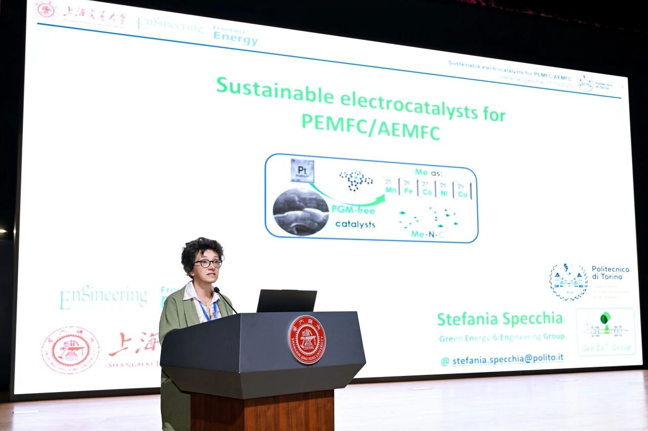 Stefania Specchia教授在“Sustainable Electrocatalysts for PEMFC/AEMFC”报告中,系统阐述了燃料电池可持续电催化剂的开发进展。针对铂资源稀缺与高成本的双重挑战,Stefania Specchia教授重点介绍了Fe-N-C等非贵金属催化剂的创新合成策略,包括不使用有毒氢氟酸的新型牺牲模板法,以及利用废弃茶叶等生物质原料制备高性能多孔碳载体。所开发的基于生物质衍生材料的催化剂在碱性环境中表现出优异的氧还原活性、良好的甲醇耐受性与长期稳定性,为降低燃料电池成本、推动可持续能源技术的实际应用提供了有效解决方案。